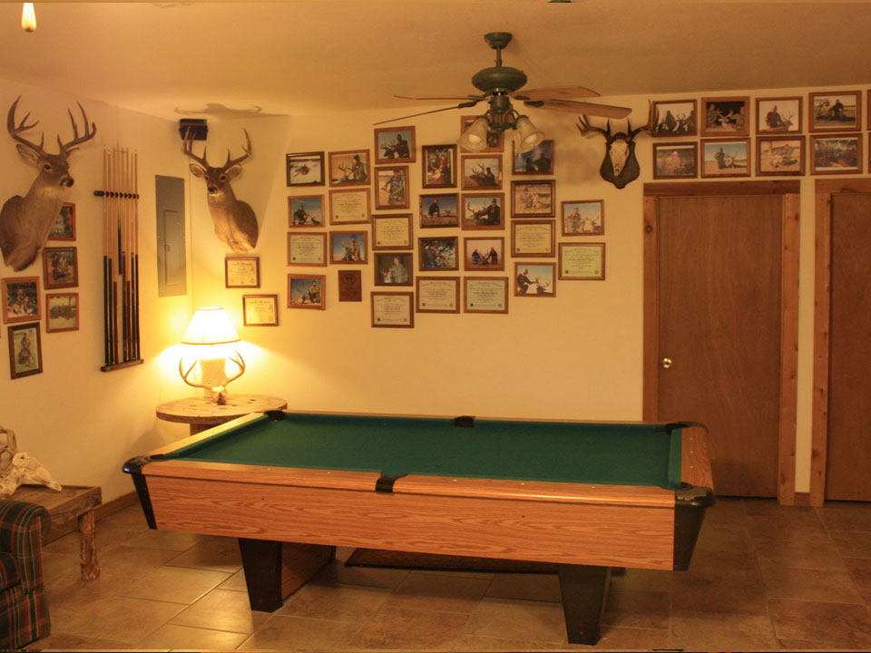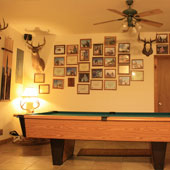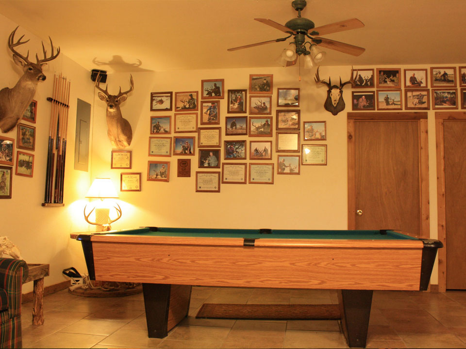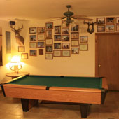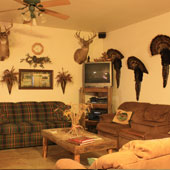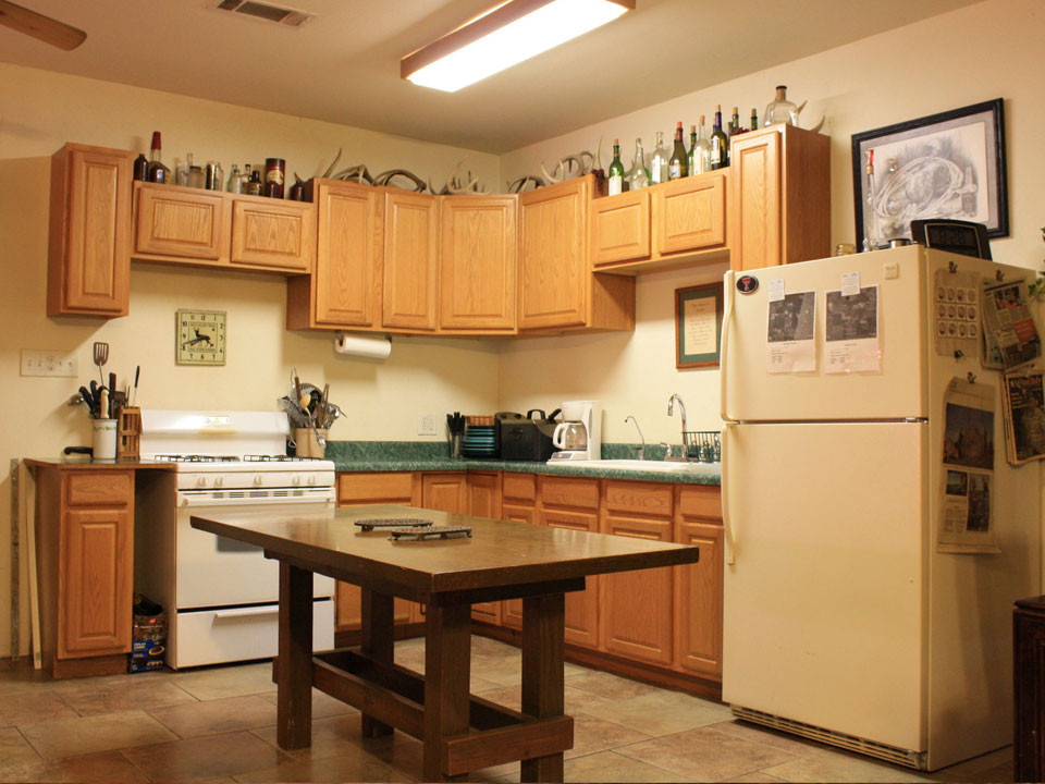Hunters can experience our rustic, yet modern lodging facility located on the main ranch. Built in 2001, the facility is 1,800 square feet in size, along with a spacious covered patio spanning the entire 60 feet on the front side of the building. Here you will find all the amenities of home, including central heat and air and satellite TV. Hunters can relax after each hunt, share stories with fellow hunters on the patio, shoot a game of pool, and even enjoy the night time West Texas sky being miles from the city lights.